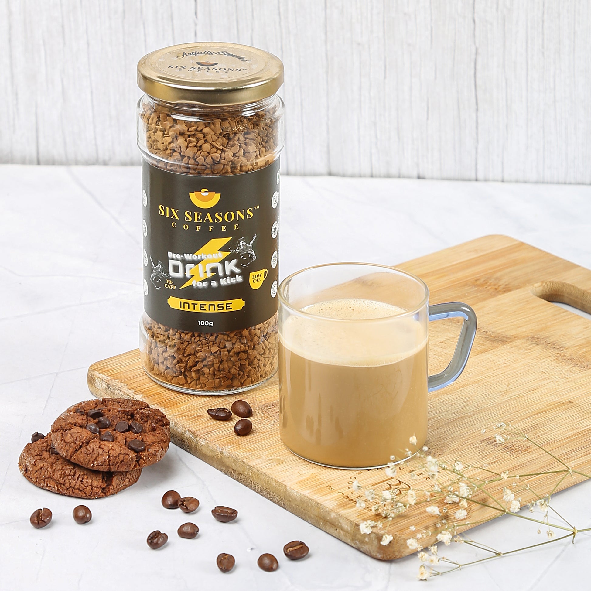 Did you know that coffee is considered the one and only natural pre-workout drink? The intense pre-workout coffee is infused with the goodness of L-Carnitine & L-Arginine which provides a steady, reliable and long-lasting pre-workout performance boost. A cup of intense pre-workout coffee improves focus and cognitive functions. Also helps speed up the fat-burning process as it uses fat cells as fuel cells instead of glycogen.